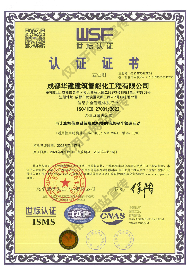 項目名稱:利豐供應鏈管理( 中國)有限公司四川分公司消防改造及配套工程; 公司簡介:項目名稱:成都市青羊區金沙雨洪下河排口AI智能視頻聯網報警監控系統項目施工單位:成都華建建筑智能化工程有限公司工程地點:...